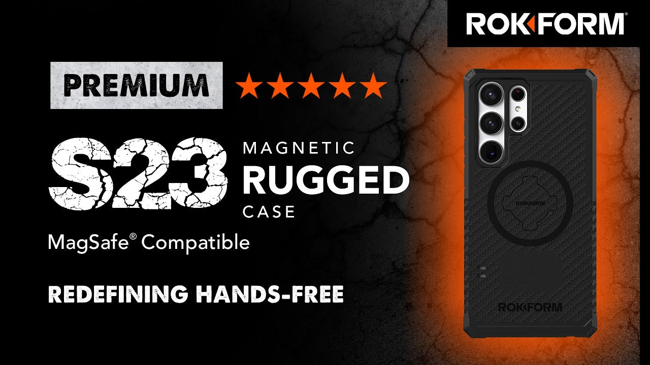 Our Galaxy S23 Rugged Case phone case doubles as a mounting accessory - 3 powerful N52 Neodymium magnets give you 3x the holding power onto any magnetic surface. Whether you're training at the gym, cooking in the kitchen, or on the way to the 18th hole in a golf cart - easily mount your phone using our Galaxy S23 Rugged Case case for the ultimate hands-free experience. Convenience and functionality is huge for us here at Rokform, hence the MAGMAX™ Ring, a center removable magnet plug, and lower magnets compatible with all our magnetic mounts.