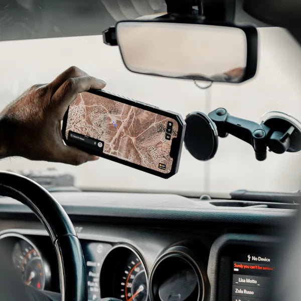 Rough terrain? No problem. We combine our massive center magnet for a strong hold onto any ROKFORM case, and an extra strong magnet array with up to 2x the strength of lesser MagSafe® compatible mounts. Both made from the highest grade N52 Neodymium magnets available. Combine that with a super grip face designed to provide maximum hold and magnetic force. No shifts, no moves, no vibration with our magnetic windshield mount.