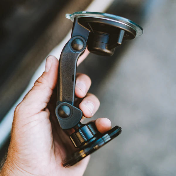 - Powerful suction cup secures mount and phone on any smooth flat surface