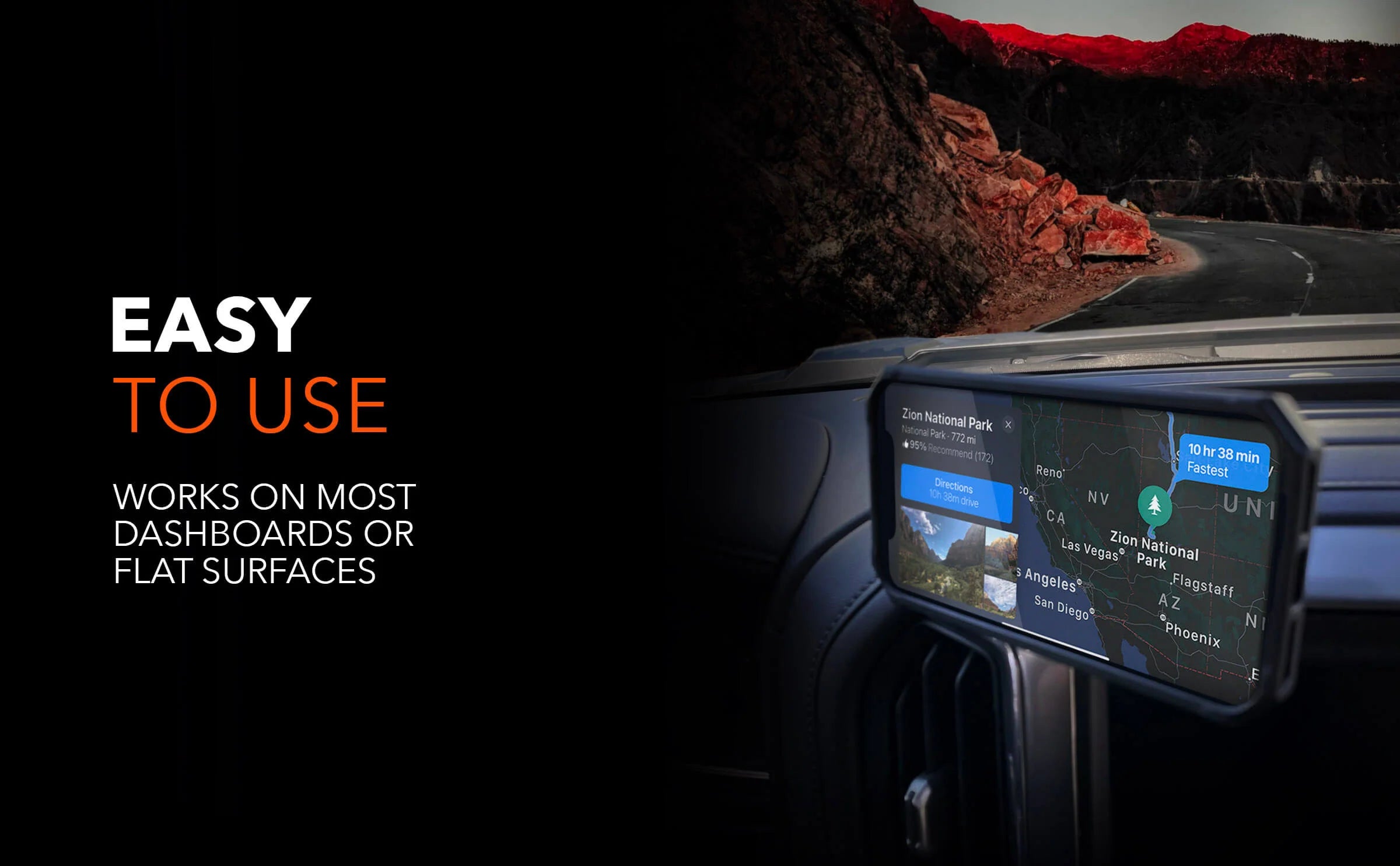 Enjoy a clear view of your phone without having to take your eyes off the road and while keeping your hands on the wheel. The Dual Magnet Swivel Mount makes your phone an extension of your vehicle, quickly glance at maps, incoming calls, texts and more just like you glance at the speedometer when you might be going too fast to work ;-)